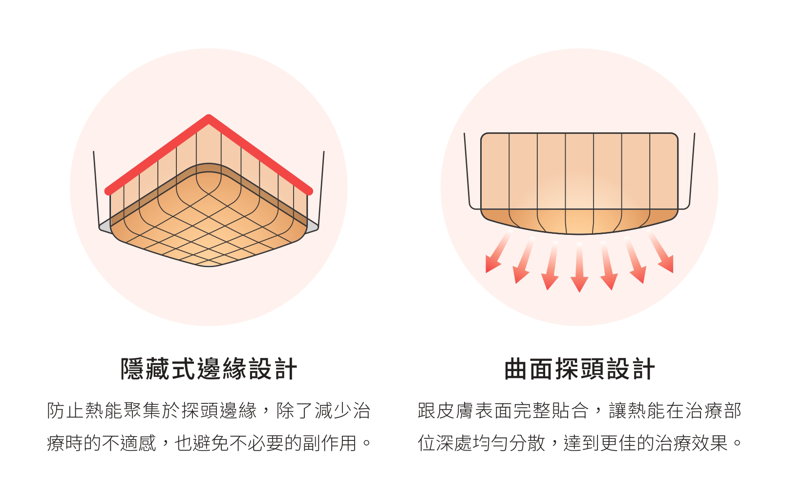 獨特「黃金探頭」設計:絕緣邊緣與曲面貼合,讓能量傳導更均勻