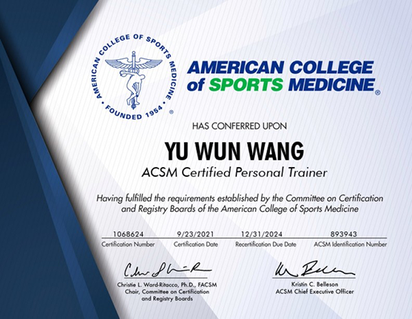 •美國運動醫學會私人教練證 (ACSM-CPT)